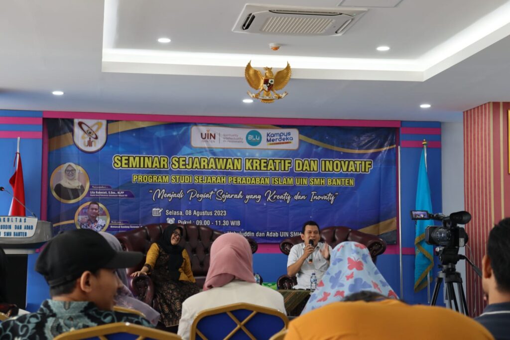 Serang, 8 Agustus – Program Studi Sejarah Peradaban Islam (SPI) Fakultas Ushuluddin dan Adab sukses menyelenggarakan seminar bertajuk “Menjadi Pegiat Sejarah yang Kreatif dan Inovatif” pada Selasa, 8 Agustus 2023. Kegiatan ini menghadirkan Lita Rahmiati, S.Sos., M.PP, Kepala Balai Pelestarian Kebudayaan Wilayah VIII, sebagai pemateri utama.